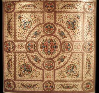 Ghom (auch: "Qum" oder "Ghum") liegt in Zentral-Iran und hieß in vor-islamischer Zeit Kumandan. Ghom ist nach Maschad die zweit-wichtigste Pilgerstadt im Iran. Der zweite Shah der Quajar-Dynastie, Fath Ali Shah, ließ die Kuppel von Fatimas Mausoleum mit Gold überziehen (Fatima war die Schwester des achten Imam Reza und liegt in Ghom begraben). Um 1930 begann man hier Teppiche zu knüpfen, heute bestehen größere Manufakturbetriebe und es wird auch in Heimarbeit geknüpft. Die Knüpfung erfolgt mit dem persischen Knoten, nicht mit dem bei Perserteppichen weiter verbreiteten türkischen Knoten. Generell kann man Ghom Teppiche dadurch charakterisieren, dass sie akkurat und fein gearbeitet sind. Mehrere Manufakturen haben sich auf die Herstellung von Seidenteppichen spezialisiert und haben in dieser Sparte einen hohen Stand und große Beliebtheit erreicht.