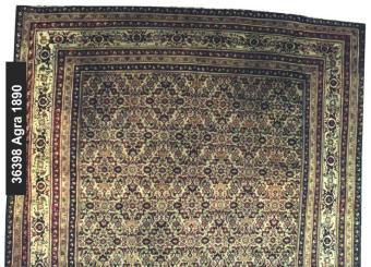 Agra befindet sich Indien und hat eine lange Knüpftradition. Es wird Qualitätsware geknüpft mit meist indopersischen und iranischen Musterungen.